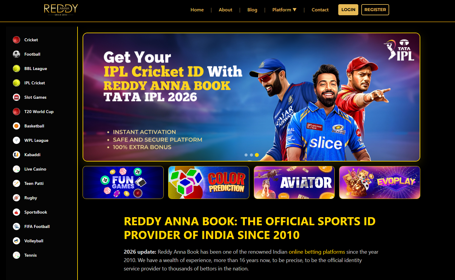 It focuses on providing a simple registration process, live betting options, and secure transactions with common Indian payment methods like UPI and digital wallets. Many users prefer Reddybook because it provides fast ID activation, real-time odds, and mobile-friendly access, making it convenient for both beginners and experienced bettors.