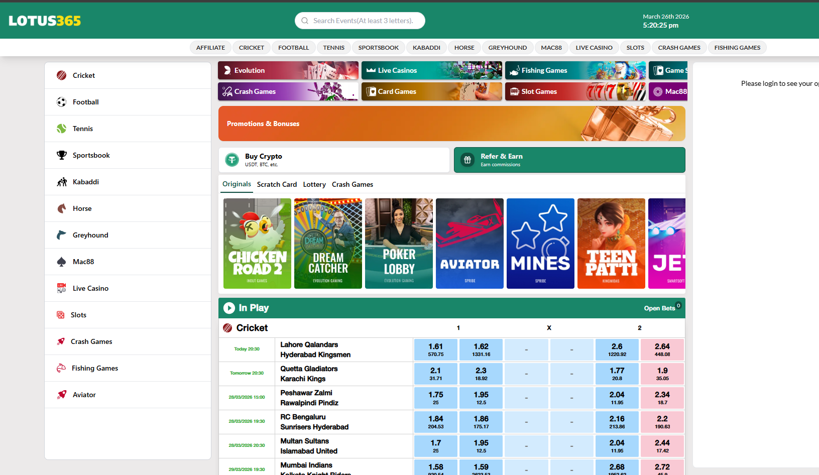 IPL & Live Match SupportYes, full live betting