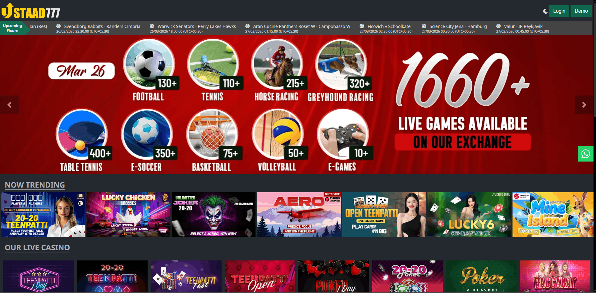 Ustaad777’s interface is designed for ease of use, with clear menus and simple bet placement, making it easy for beginners and pros alike.
